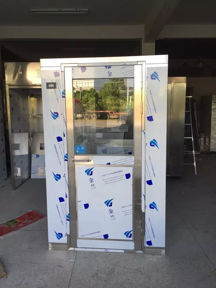 單人風淋門結構特點:1.單人雙吹風淋室由箱體、門、高效過濾器、送風機、配電箱、噴嘴等幾大部件組成。 2.風淋室的底板通常由不銹鋼制成,箱體用不銹或鋼板折彎焊接表面為乳白色烤漆。3.箱體采用優質的冷軋鋼板制造,表面靜電噴塑處理,美觀大方,內底板全不銹鋼板制做耐磨擦,易清潔。4.箱體主材及外形尺寸可根據客戶要求定制。