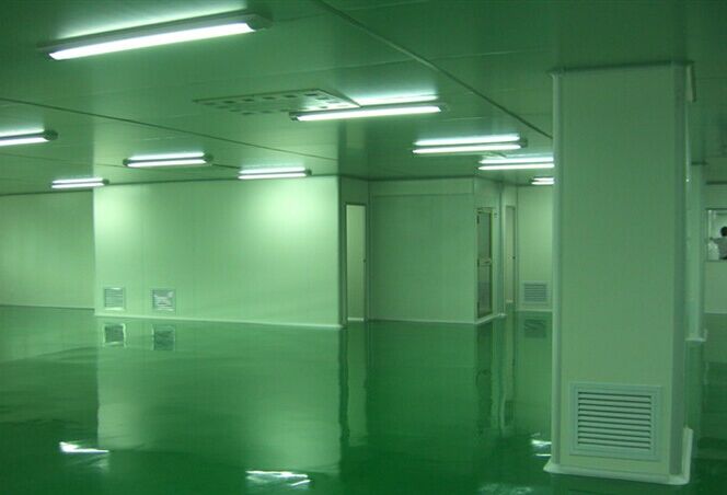 潔凈室地面也是保證室內潔凈度的重要部位,其材料要求是防滑、防靜電、耐磨、耐腐蝕、易清潔。常見潔凈室地面有:現澆嵌銅條水磨石地面、塑膠地板、及橡膠地板(一般鋪設前采用自流平材料平整地面)。