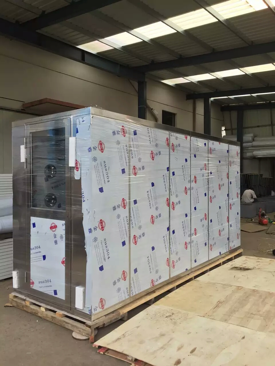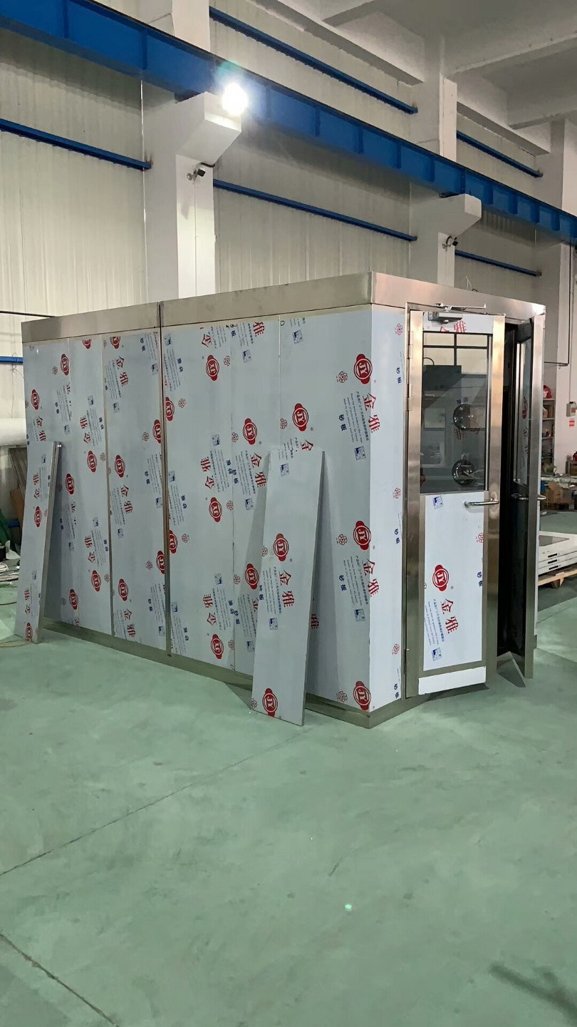 名稱:風淋室(又名空氣浴塵室、風淋房、風淋門、空氣吹淋室、AIR SHOWER,風淋設備,風淋機之類)是人員進出無塵室所必需的通道,并同時起到氣閘室密閉無塵室的緩沖作用,是進行人員除塵和防止室外空氣污染無塵室的有效設備,也是目前凈化車間人員通的必需設備。